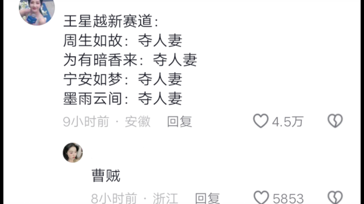 看了墨雨云间后,网友评王星越:年纪轻轻净干大事,夺人妻赛道这么小众都给他闯进去了😂