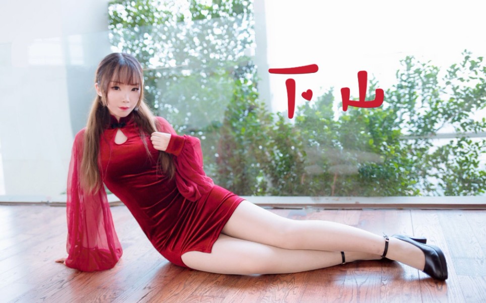 رقصة البار الصيني بفستان تشيباو، وضعية الساق الواحدة الأنيقة