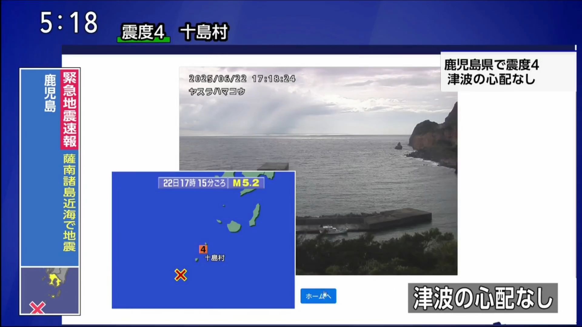 [NHK G] M 5.3 intensity 5- 2025-07-02 15:26 Near Tokara Islands