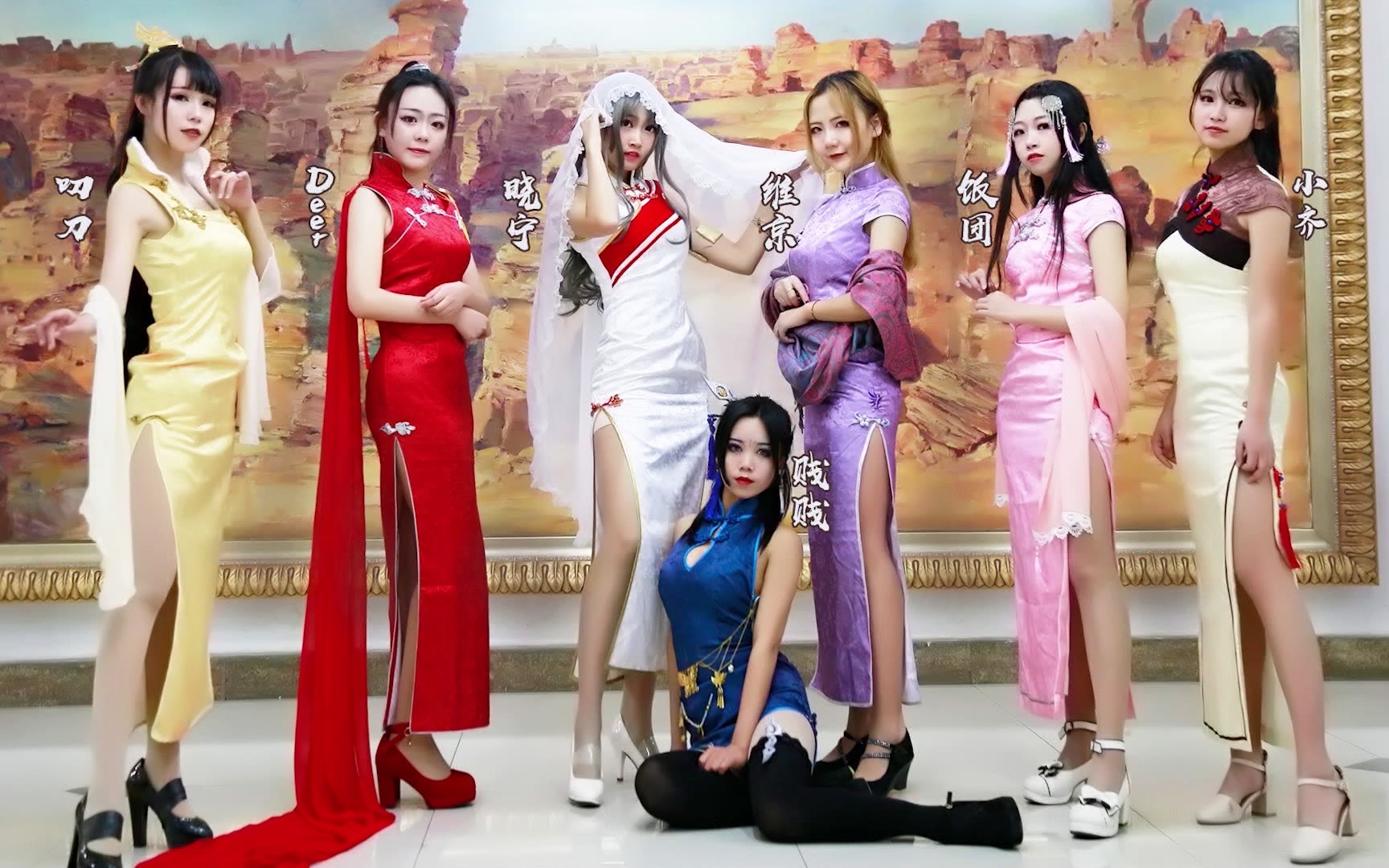 رقصة البار الصيني بفستان تشيباو، وضعية الساق الواحدة الأنيقة
