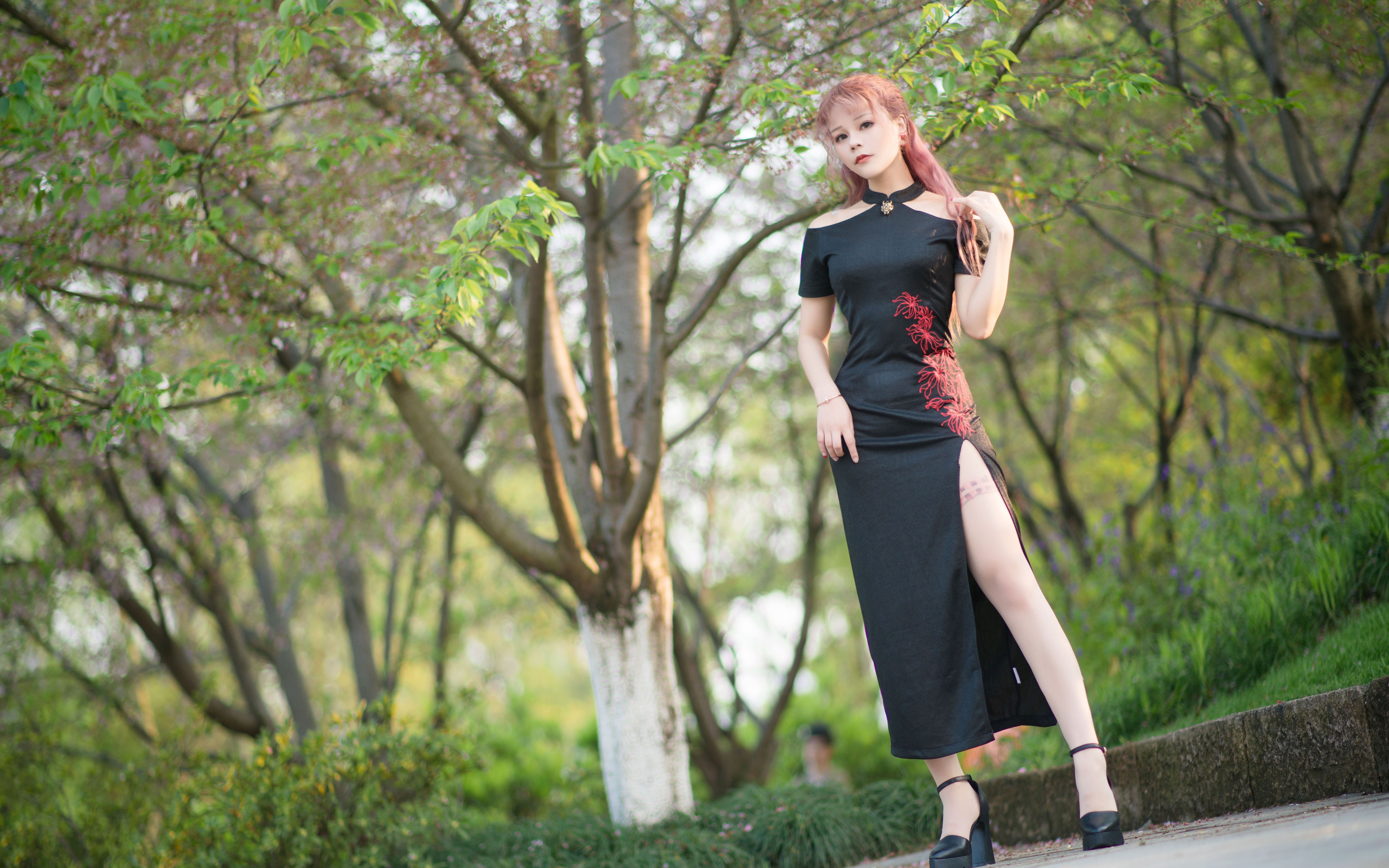 رقصات الأخوات الجذابة بالتشونغسام الوردي