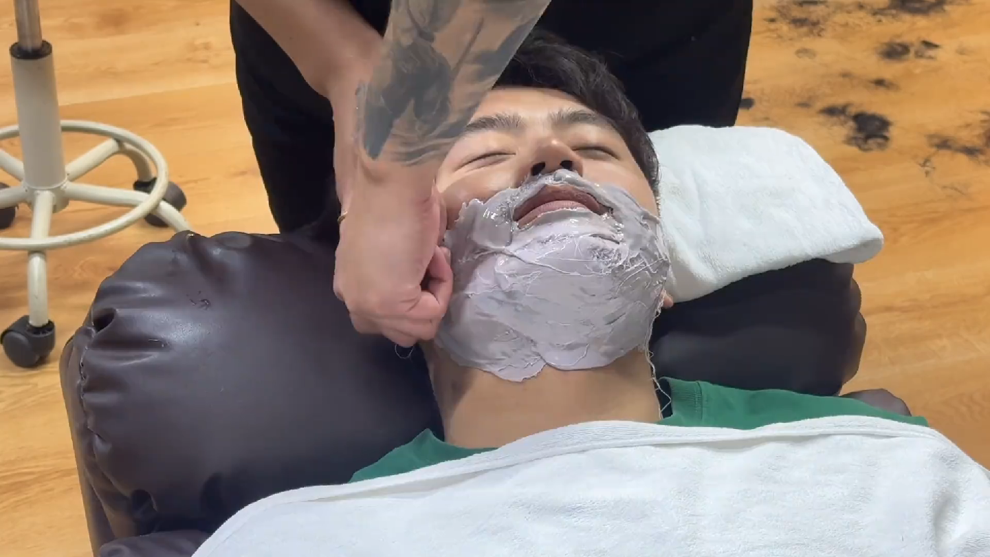 كان الممثل الصغير نائمًا، مستلقيًا على الأرض ويمثل دور شخص مسموم وضعيف.