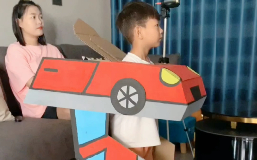 صنع طفل دبابة كبيرة من نفايات الكرتون، قادرة على إطلاق القذائف. كان والده هو هدفه الأول.