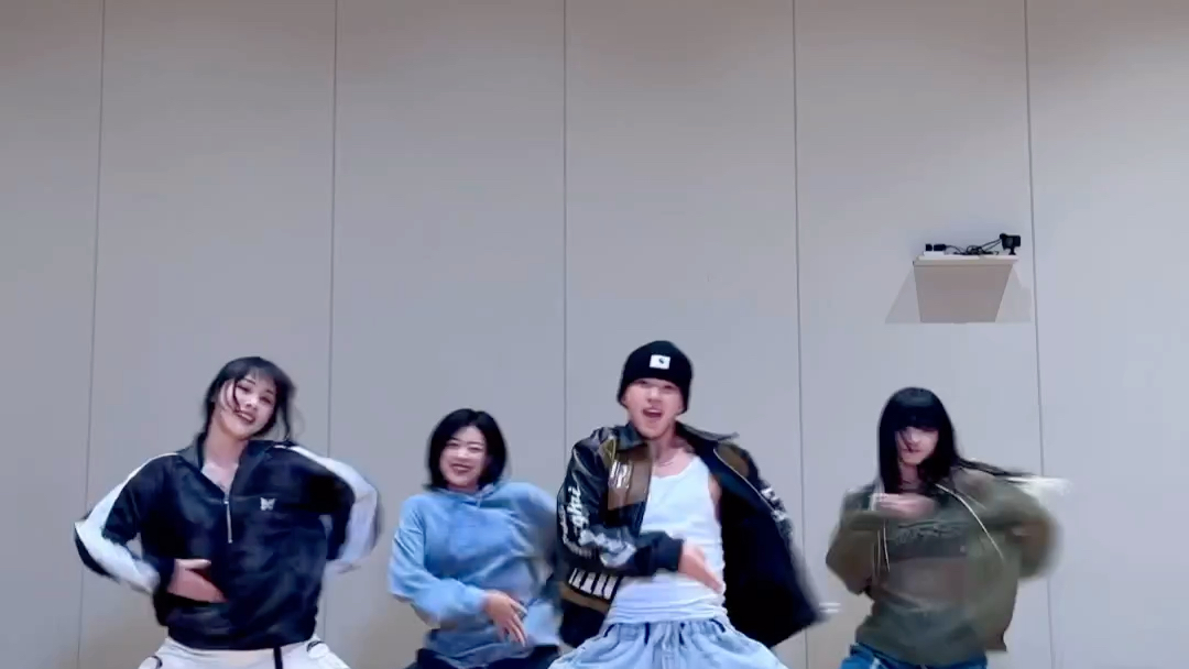 جميع الأعضاء يرتدون ملابسهم على الإنترنت، باستثناء ملابس الخريف! مزجٌ مسرحيٌّ لأغنية "هوم؛ ران" لفرق
