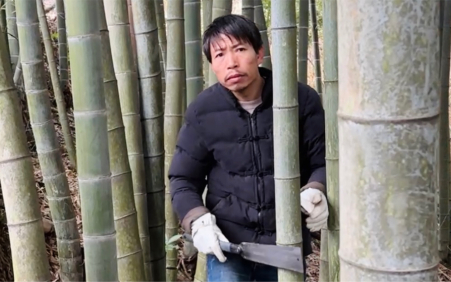 عندما كنت صغيرًا، كنت أستطيع ركل عشرة خيزرانات كهذه. الآن، أستطيع استخدام الفأس لتقطيعها بسهولة.