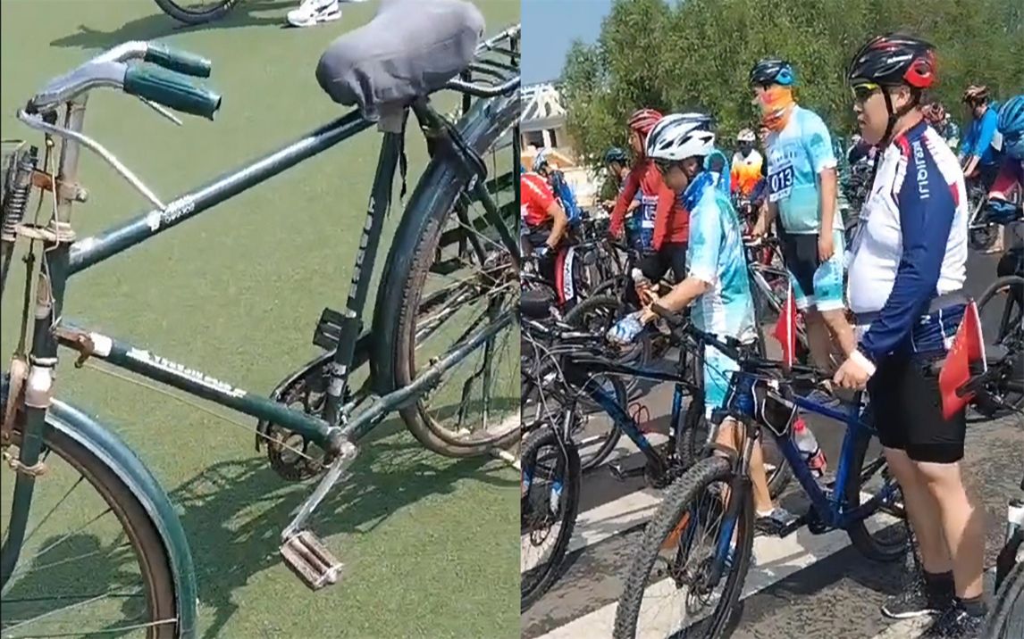 اصطدام عرضي بين دراجتين بسبب عدم رفع الرأس للنظر في الطريق أثناء القيادة.