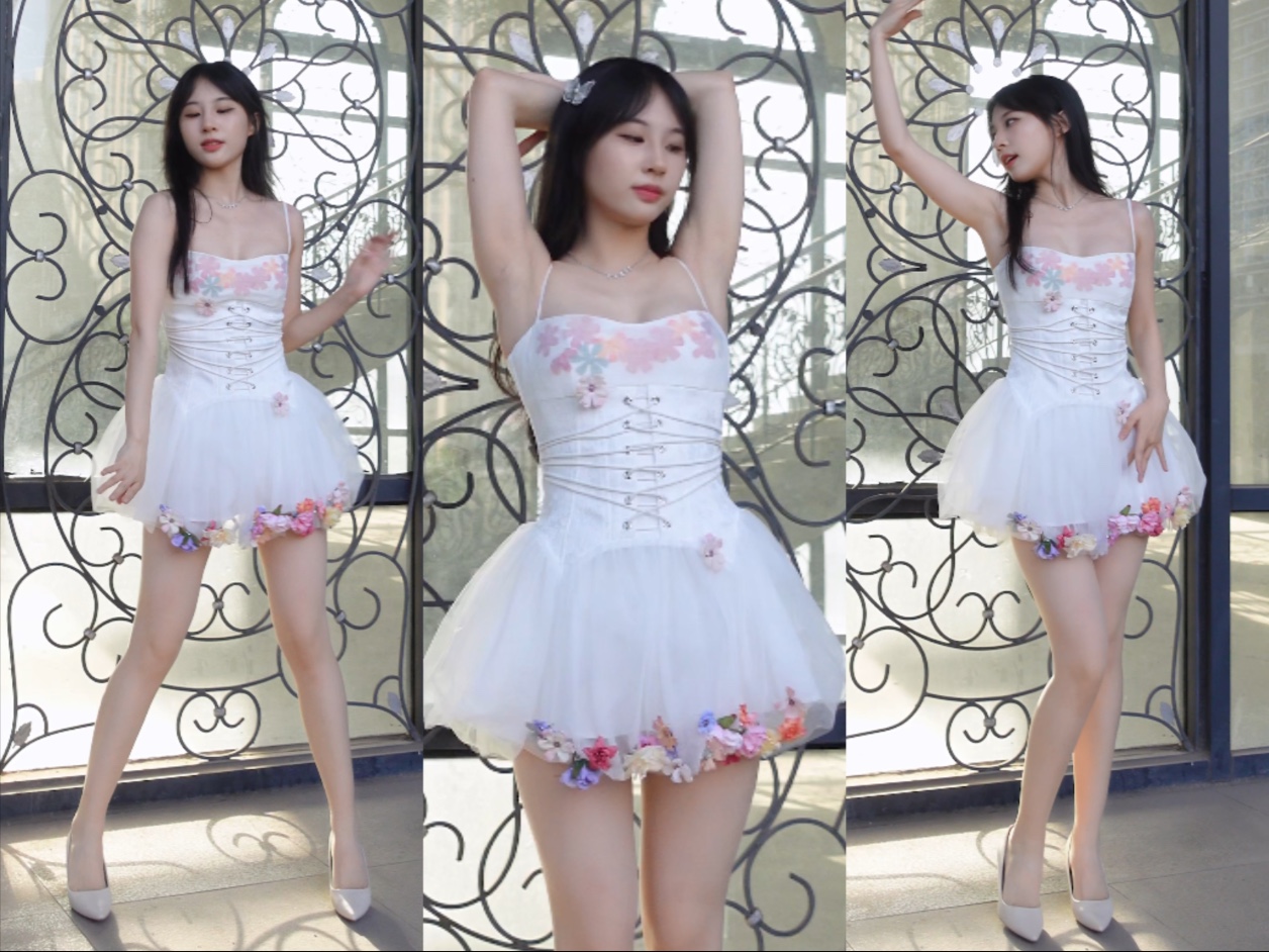 【شاشة عمودية】بكيني أبيض شفاف مجوف. رقصة البوجي أب - فتيات كوزميك