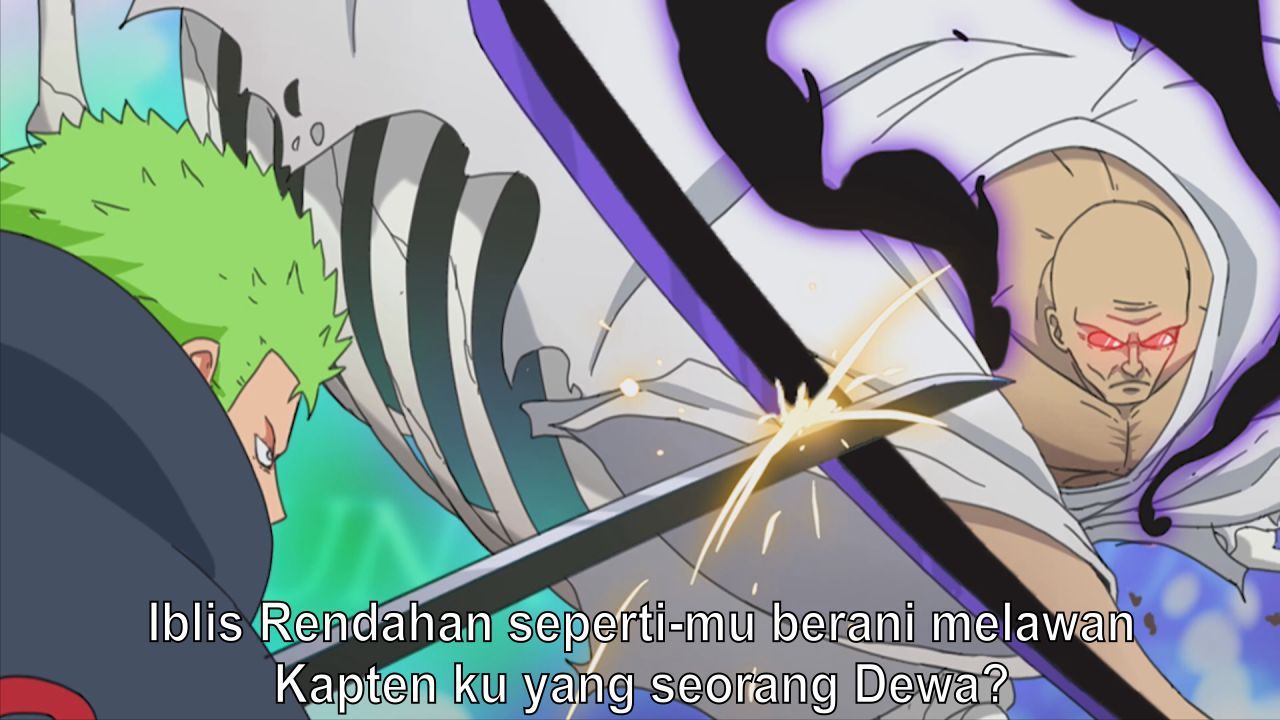 "لوفي يلعب بالسكين، لا يعطيه لزورون، زورون حسود جدًا هههه"