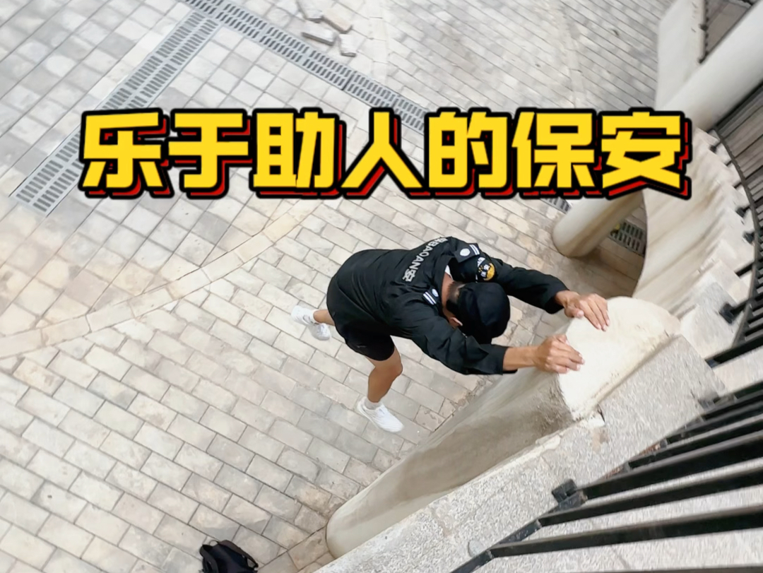 حارس الأمن لا يسمح لي بممارسة رياضة الباركور، لكنني أصر على الركض. إنه أمر مزعج.