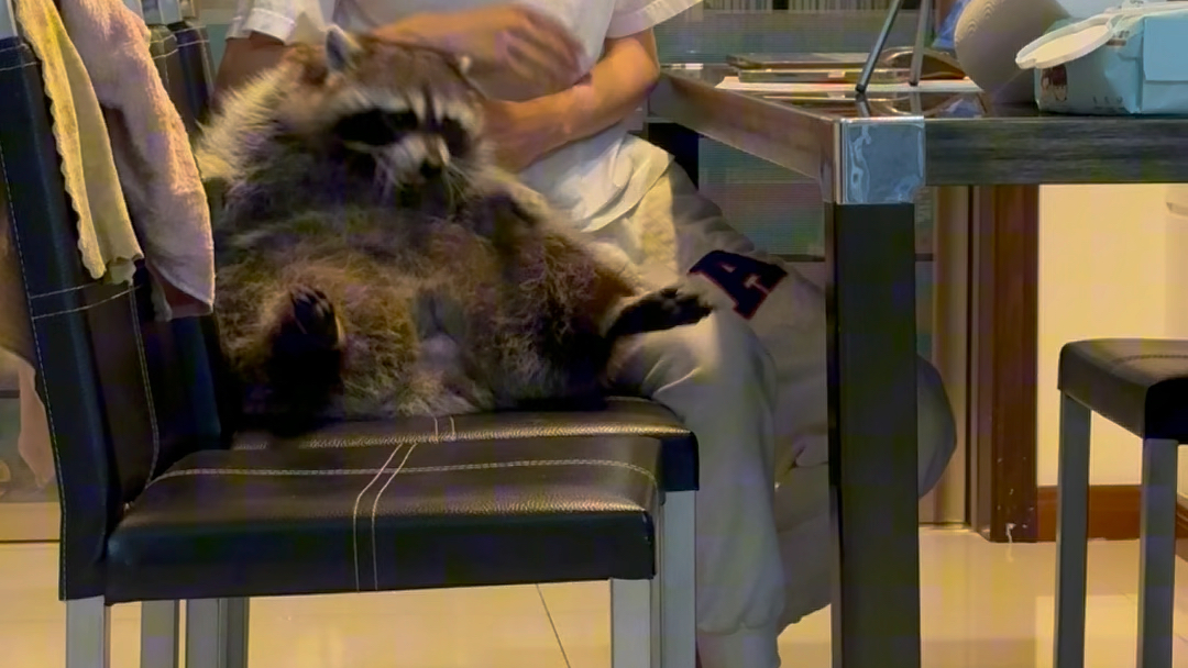 لحظة انتزاع الطعام، تغيرت عبارة الراكون تمامًا...