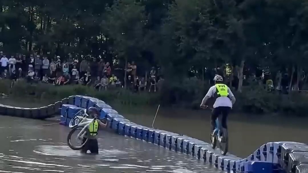 سباق دراجات حيث اصطدم شخص ما في البداية