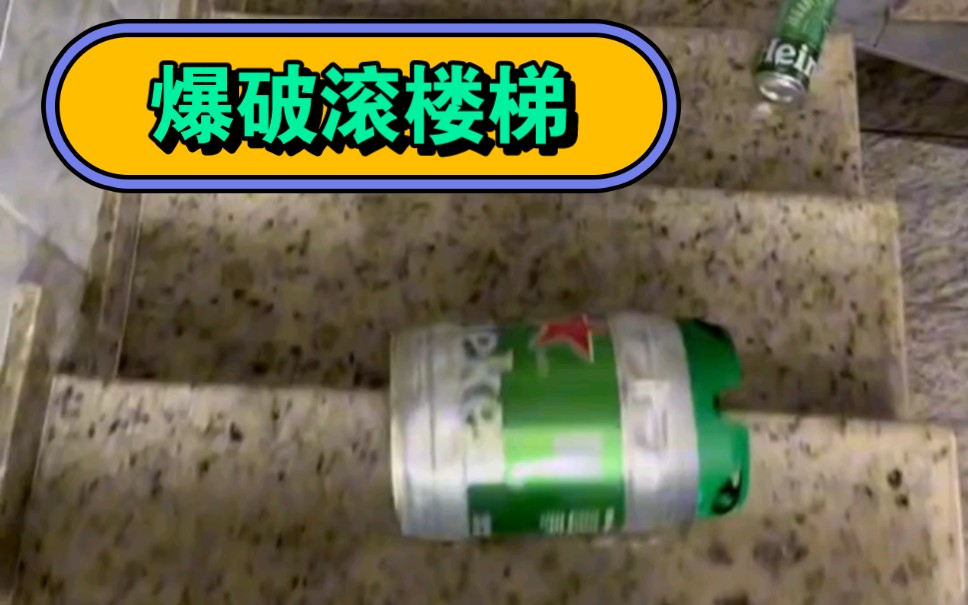 لحظة كسر ضغط انفجار زجاجة متدحرجة على الدرج