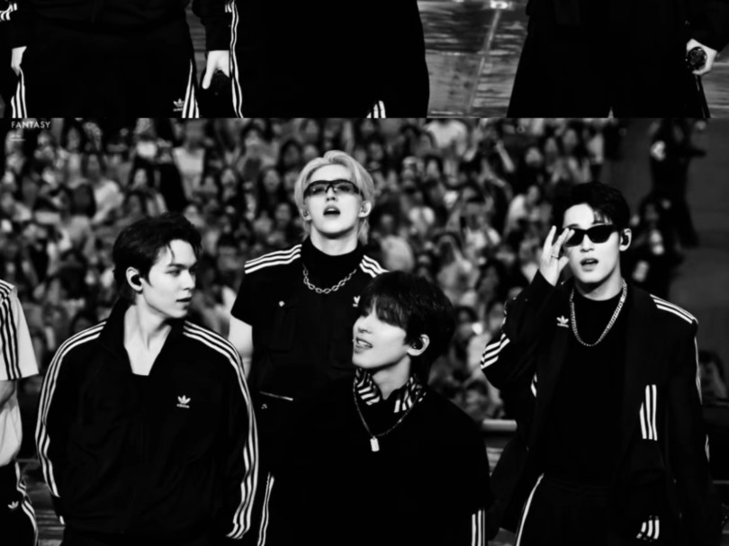 جميع الأعضاء يرتدون ملابسهم على الإنترنت، باستثناء ملابس الخريف! مزجٌ مسرحيٌّ لأغنية "هوم؛ ران" لفرق
