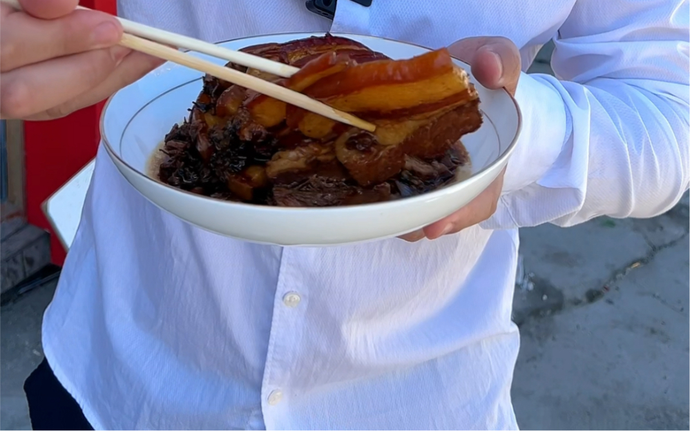 أليس هذا هو لحم الخنزير المشوي على الفحم الذي كنت أحلم به ليلًا ونهارًا، برائحته المقرمشة، وملمسه ال
