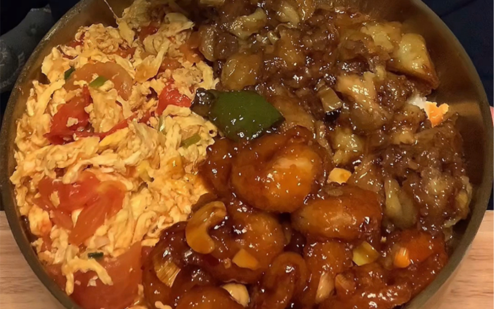 دجاج بالفلفل الأسود، أخطبوط حلو وحار، لحم خنزير مطهو ببطء، وأرز في مرق