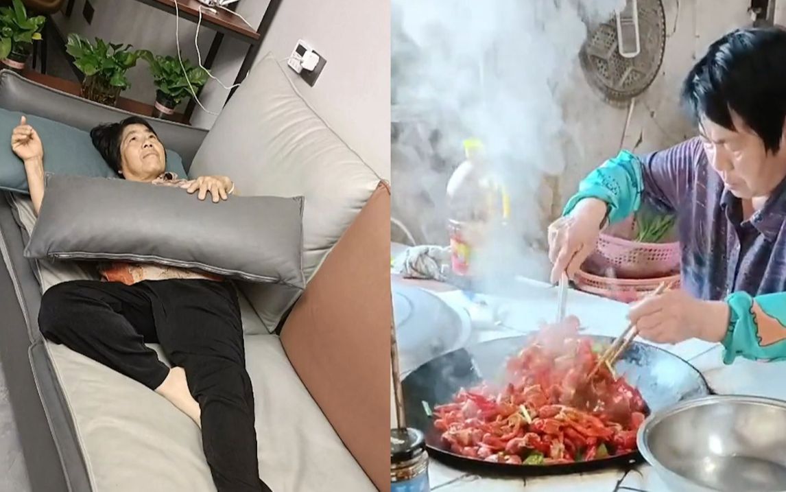 الأم التي تعتني بسبعة أطفال تحضر طعامًا لذيذًا مع أطفالها بجانبها