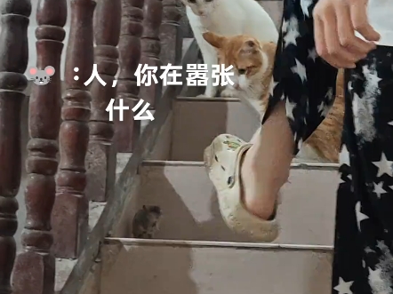 القطط والكلاب تتفاعل مع الفئران الكبيرة