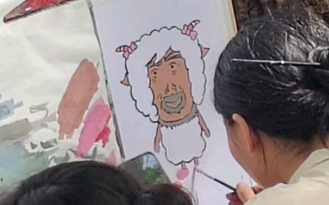 رسم رسام الشوارع صورةً كرتونيةً للفتاة. بمجرد رسم حدود العينين، أدرك أن النتيجة ستكون رائعةً بلا شك!
