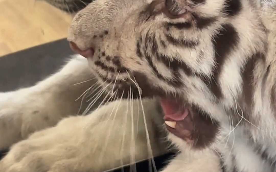 طفل النمر الأبيض حديث الولادة لطيف للغاية (。•ᴗ-)_