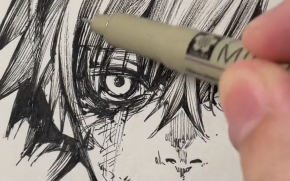 رسم رسام الشوارع صورةً كرتونيةً للفتاة. بمجرد رسم حدود العينين، أدرك أن النتيجة ستكون رائعةً بلا شك!