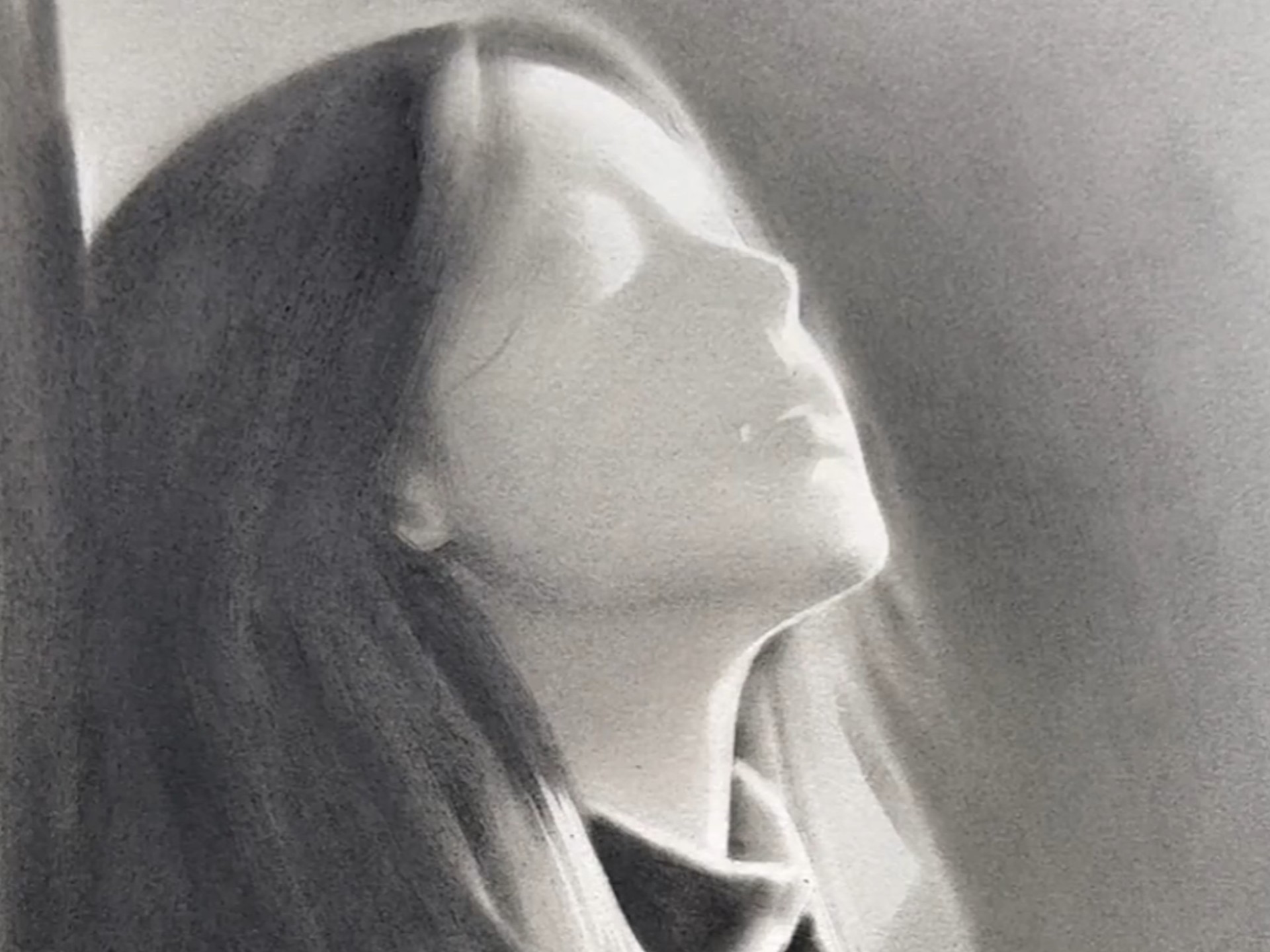 مجموعة من رسومات الفحم للرسامة الجميلة سيلفي مهدال، مفصلة للغاية بحيث تبدو كل خصلة من الشعر وكأنها ح