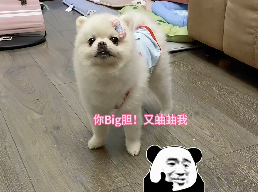عندما رآني ألتقط له صورة بهاتفي، اختبأ بخجل. (كلب صيد أصفر من مواليد قوانغشي، ذو وجه أبيض)