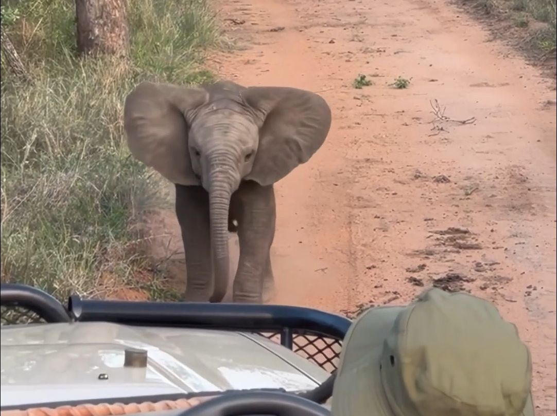 الفيل الصغير الذي كان يتعلم شرب الماء من أنفه أخيرًا لم يستطع الصمود وانزلق إلى الأسفل ليشرب من فمه