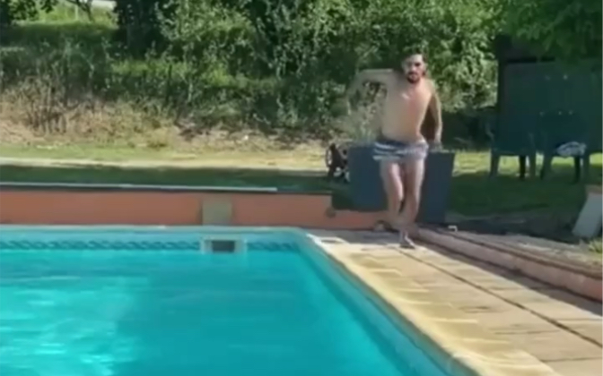 طريقة ارتداء ملابس السباحة في حوض السباحة الخارجي لأخي هابين
