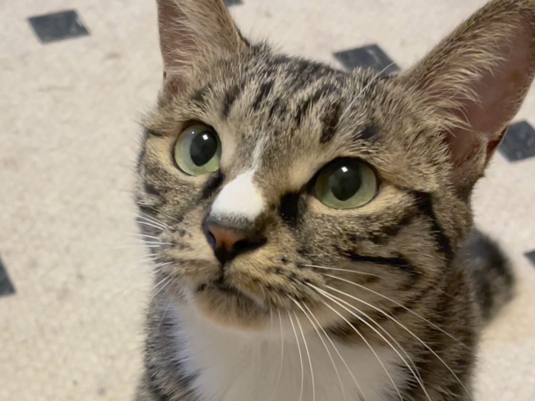 قطي الكبير المخطط، أفضل وصف له هو: "حسن السلوك". تبنّيته قبل شهر واحد فقط. الآن عمره سنتان ووزنه أحد