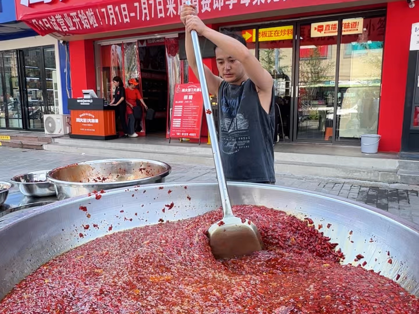 نودلز الفلفل النباتية على جانب الطريق في تشنغدو، بسعر 10 يوانات للطبق، حارة وزيتية، حارة جدًا! كلما