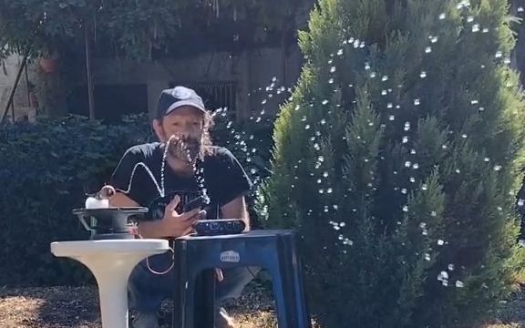 قام الجد بتعليق وبر القطط الذي جمعه لصنع عش للطيور