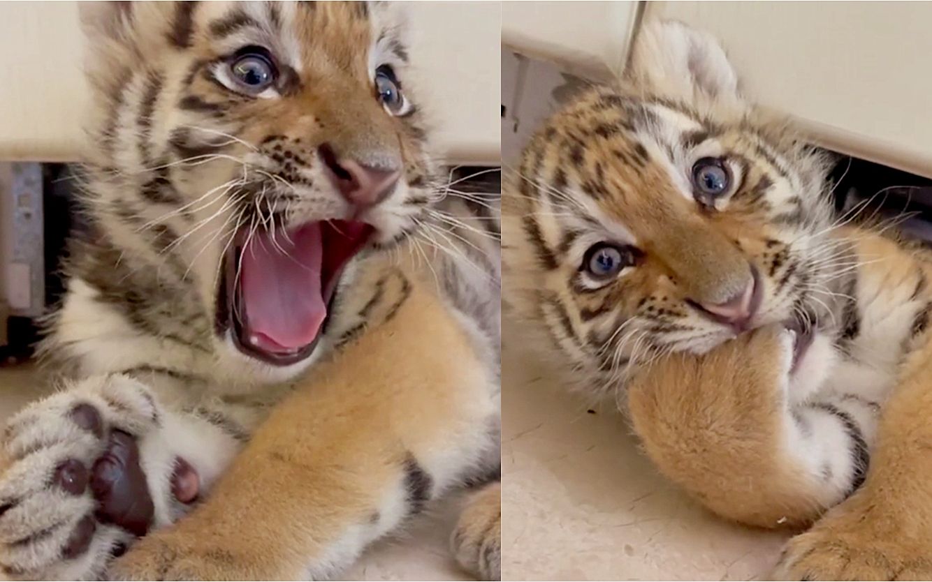 هكذا يلعب الأسد والنمر اللذان نشآ معًا