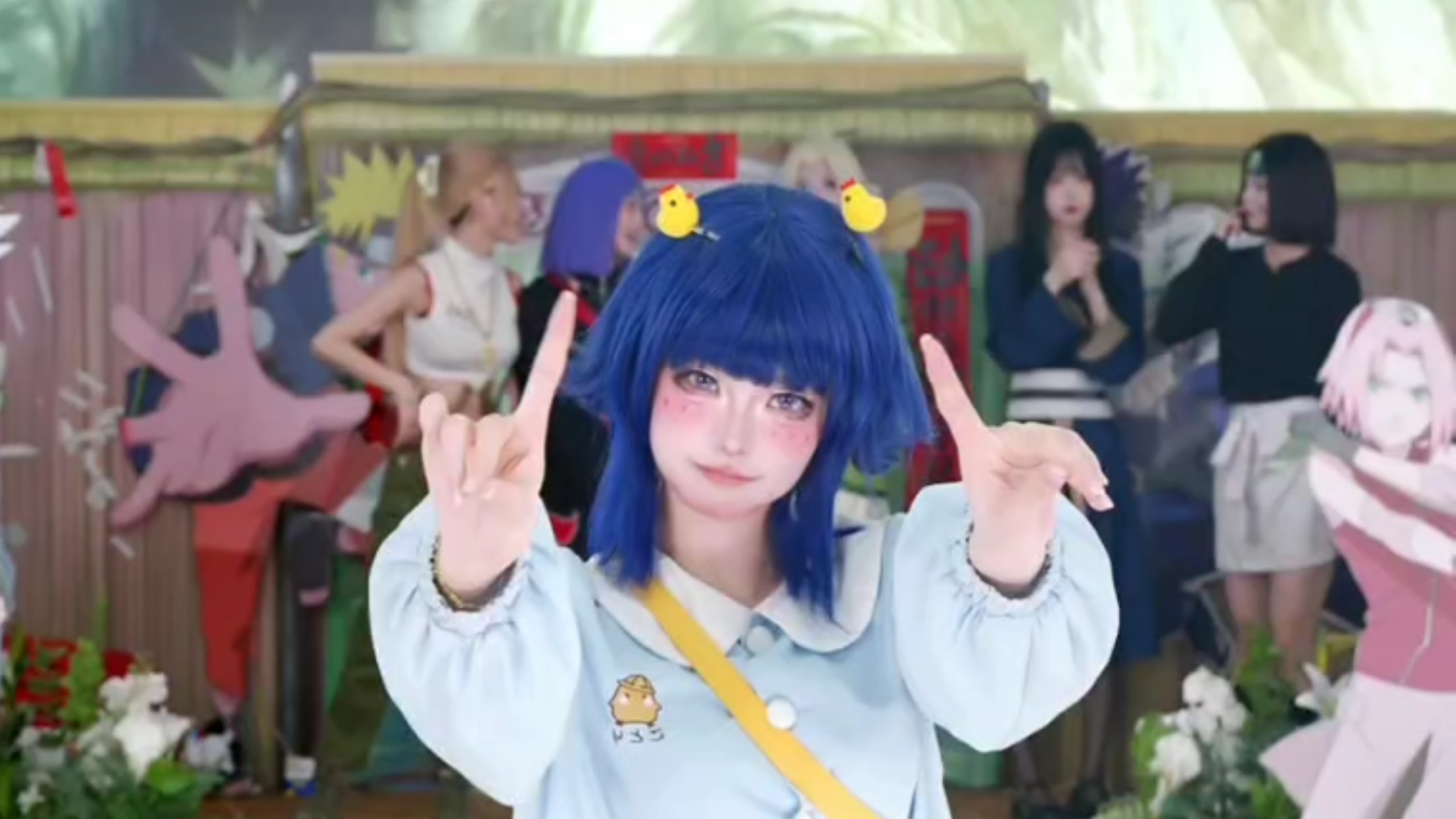 زي HeeSol باللون الوردي الكرزي الفاتح والأزرق الناعم