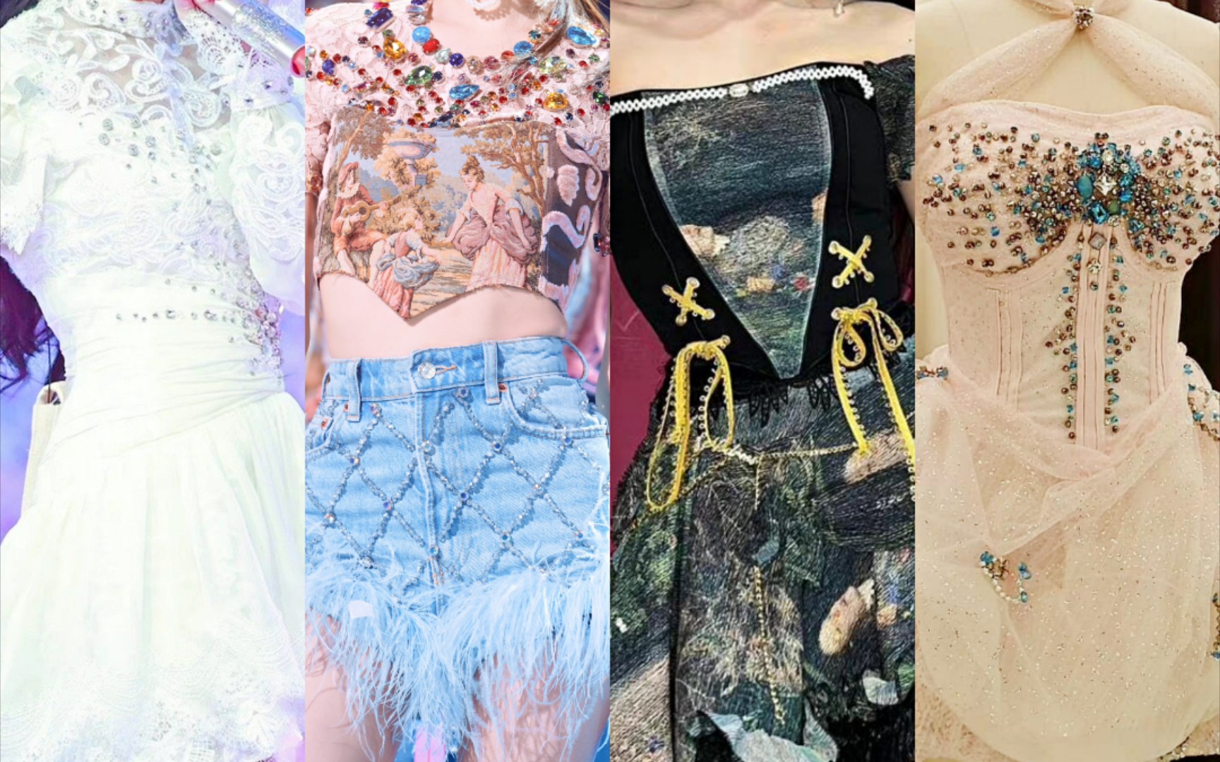 ساتان لامع مع زهور البلوبانك الزرقاء! تنورة الفتاة تتناثر عليها أضواء لامعة، خريف ذهبي بدقة 4K، تصوي