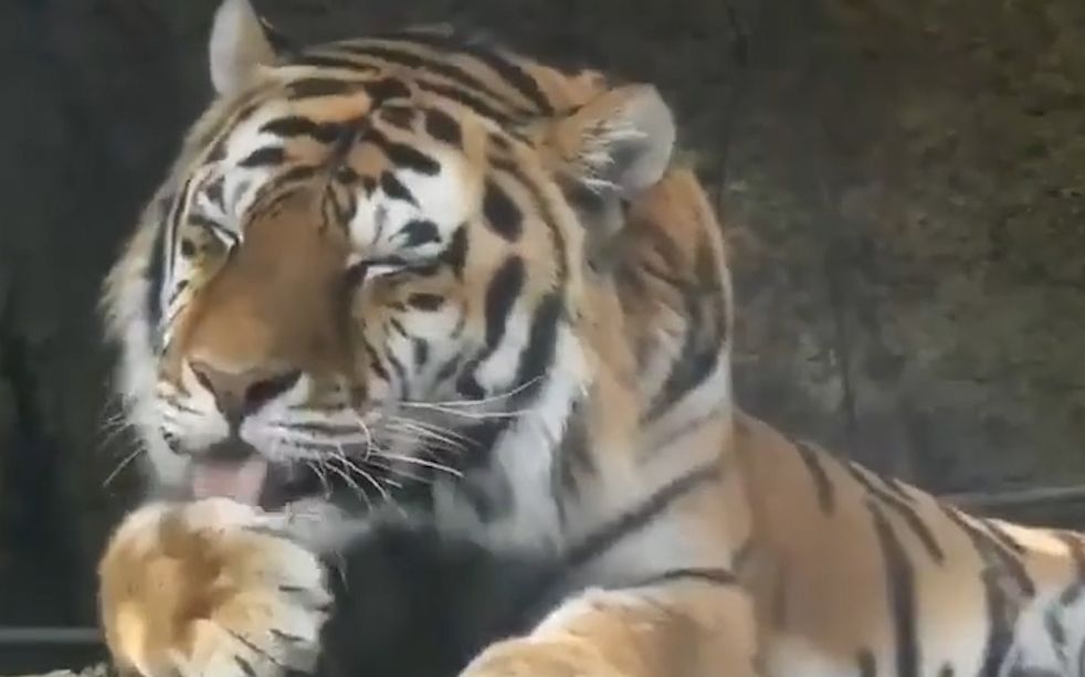 النمر الأبيض أحب الشعور الذي يشعر به تحت الأسد، دافئ ورقيق، هذا هو المذاق الحقيقي!