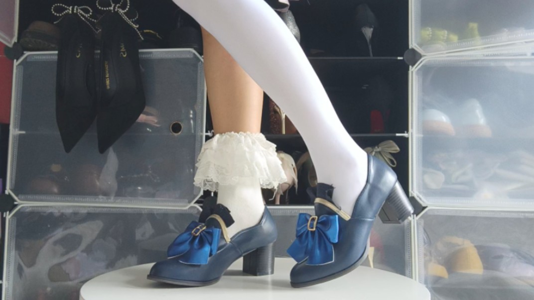 【لينغ】سلسلة "إيتشي" جوارب بحمالات دانتيل ثلاثية الأبعاد بيضاء – تجربة الارتداء