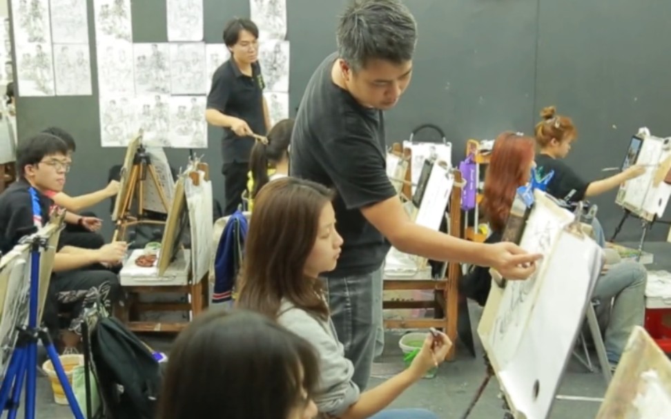 طالب الفنون يكمل واجباته المدرسية
