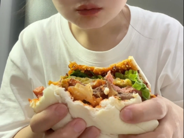 【ترجمة بوكي الصينية】استمتع بالبرجر الضخم، وانظر كم عدد البرجر التي تستطيع الأخت الصغيرة تناولها في و