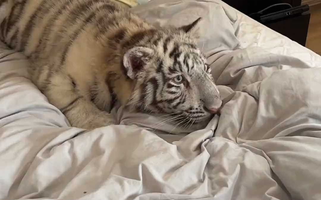 وحيد عائلته من حيوانات النمر الأبيض، لكنه سُرق من قبل أرنب أسود!