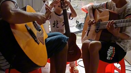 البحر الواسع، السماء، الأب والابن يغنيان معًا على الجيتار