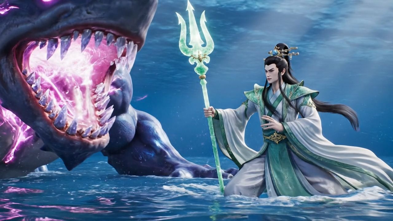 In a whirlpool of marine energy, these two masters of the depths are about to merge, giving birth to the most formidable protector the oceans have ever known.