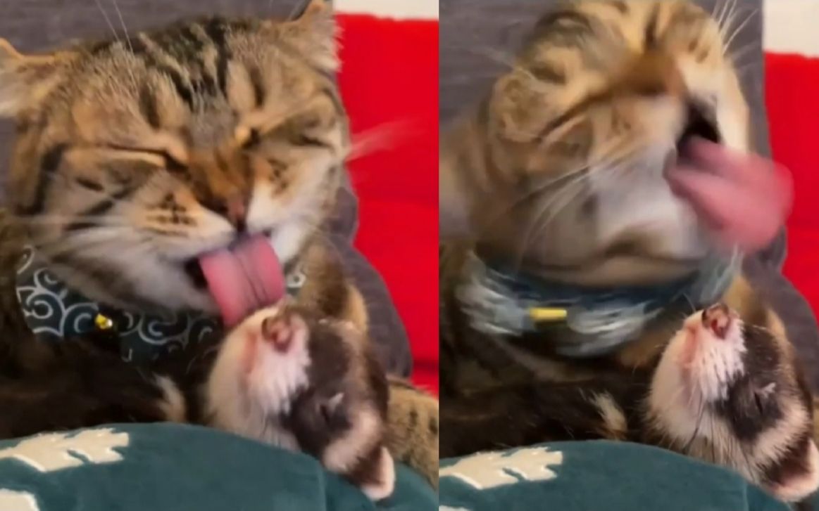 【الحياة اليومية】أمسكت بالقطة ورفضت تركها تذهب، فصدرت منها أصوات ناعمة ومريحة! لطيف جدًا!