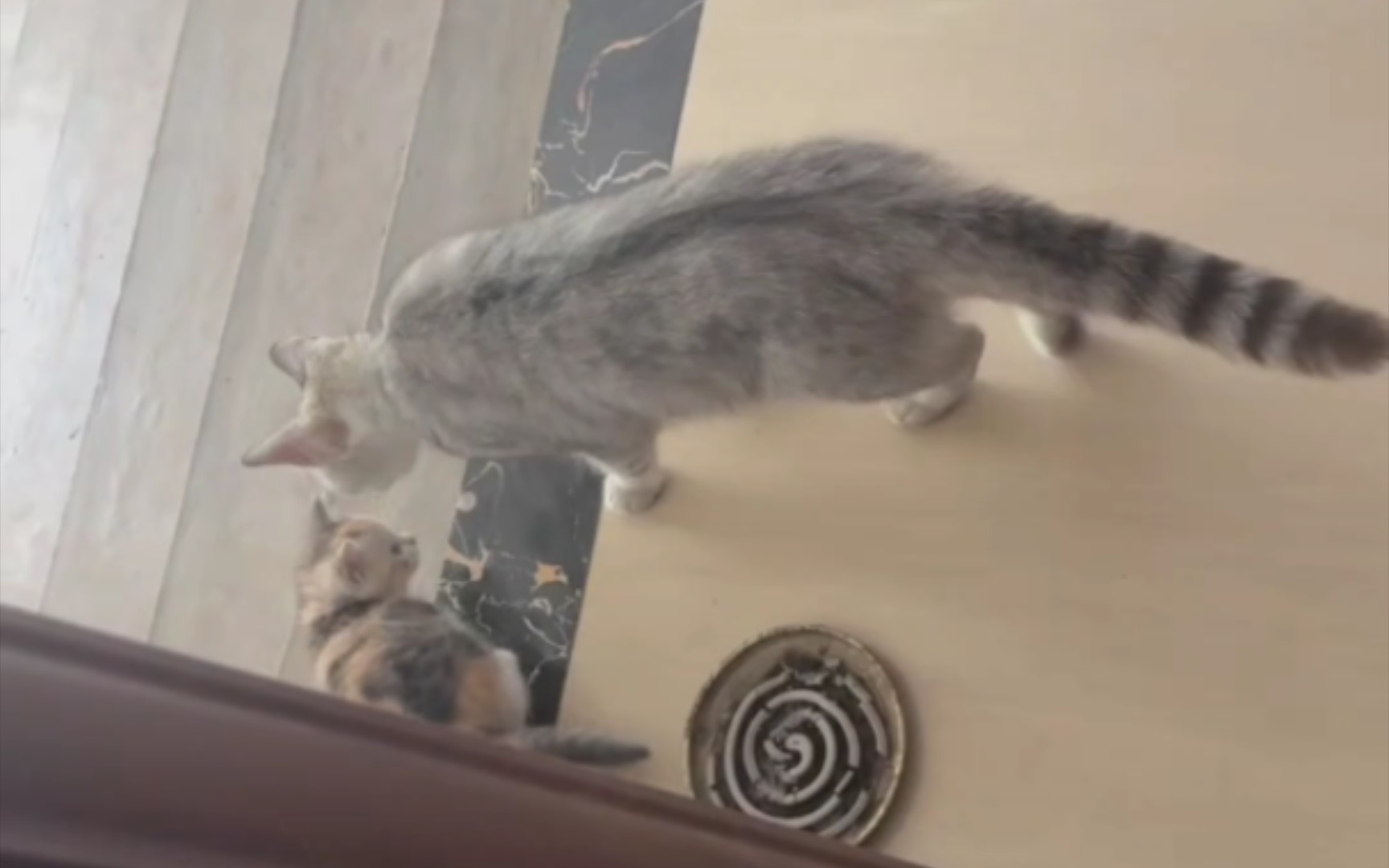 القطة: "شيء ما يضغط عليّ باستمرار، لحسن الحظ أن أمي معي~"
