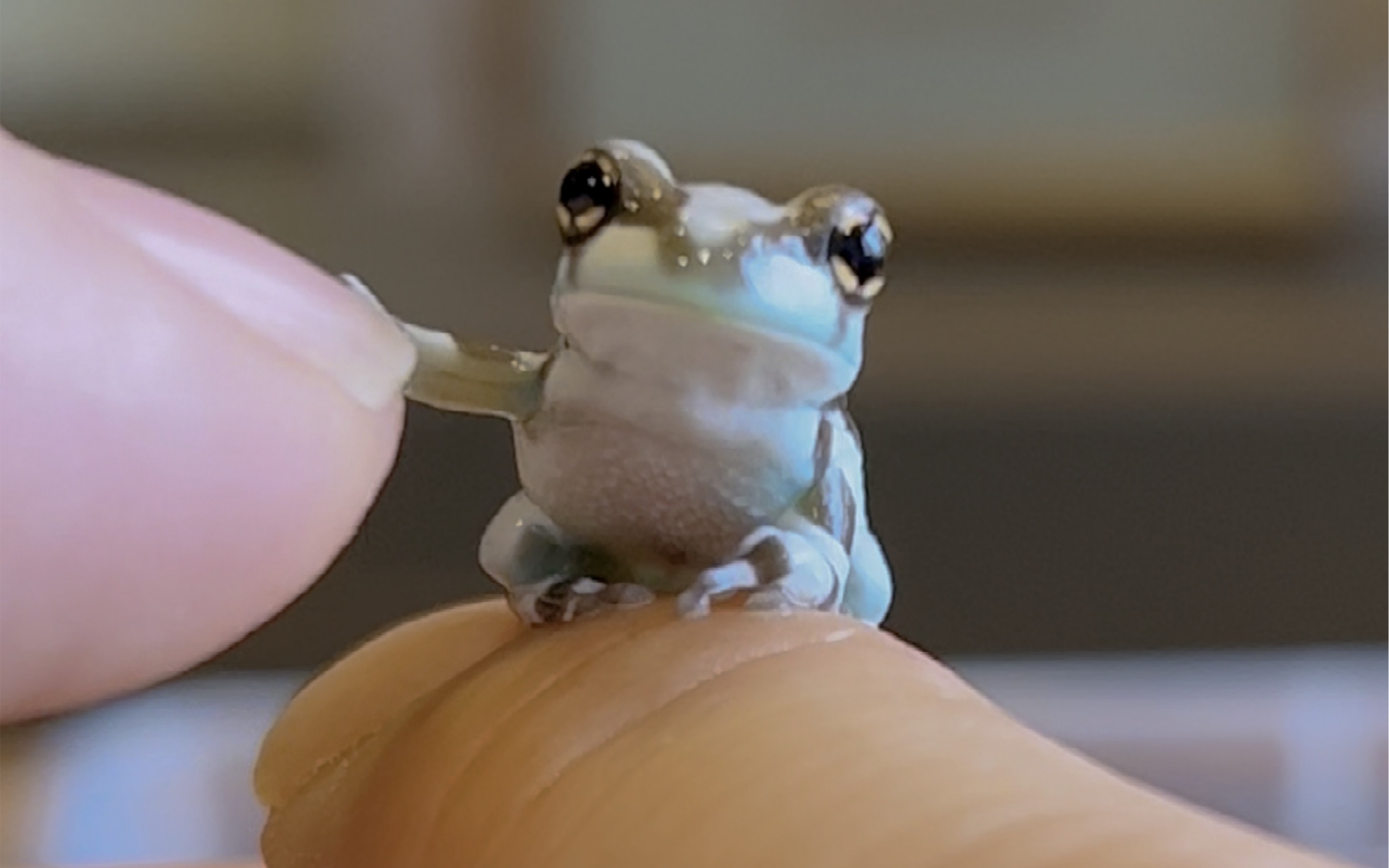 تعبير وجهه غاضب وجسمه مستدير. هذه أول مرة ألاحظ فيها جمال ضفدع الشجرة.