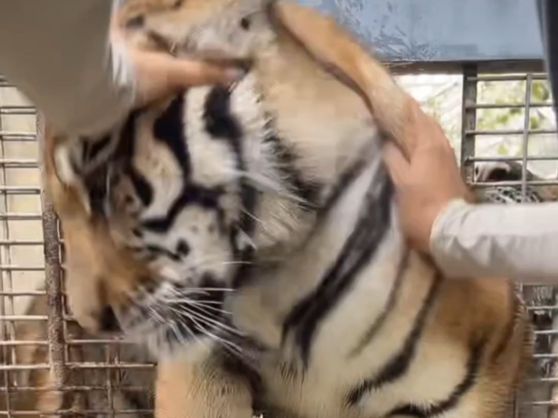 النمر الأبيض أحب الشعور الذي يشعر به تحت الأسد، دافئ ورقيق، هذا هو المذاق الحقيقي!