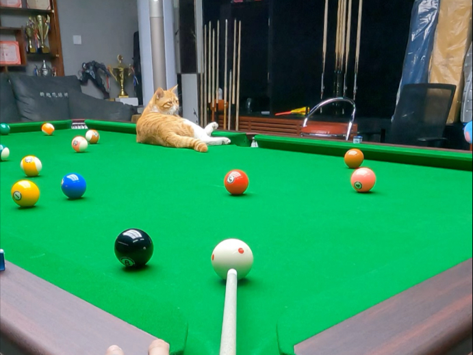 لعبة بلياردو من منظور الشخص الأول مع إزالة جميع الكرات
