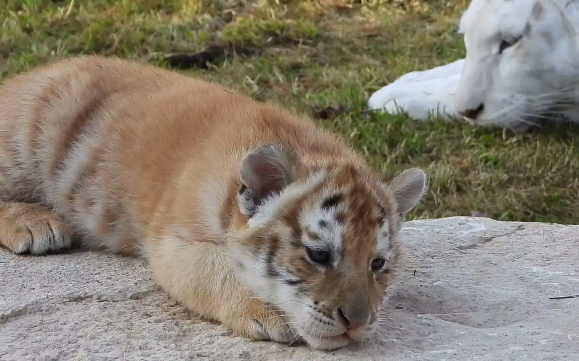 النمر الأبيض أحب الشعور الذي يشعر به تحت الأسد، دافئ ورقيق، هذا هو المذاق الحقيقي!