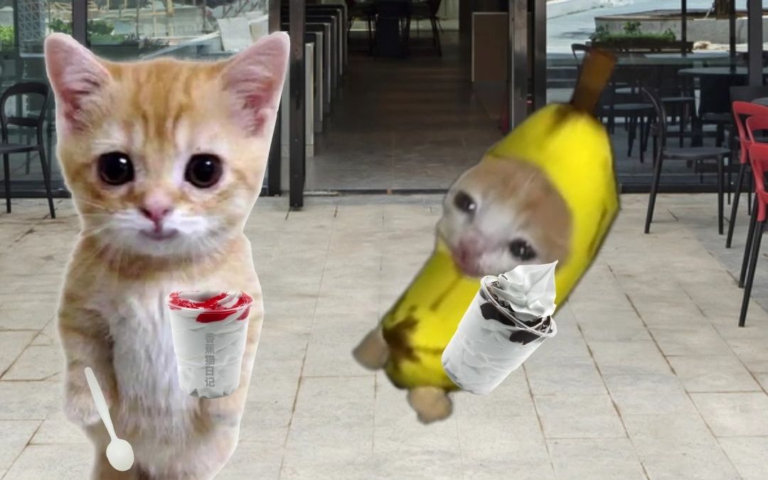 قطة الموز تقابل قطة الزونغزي في المحطة، وتستعد لاصطياده مع الدمية.