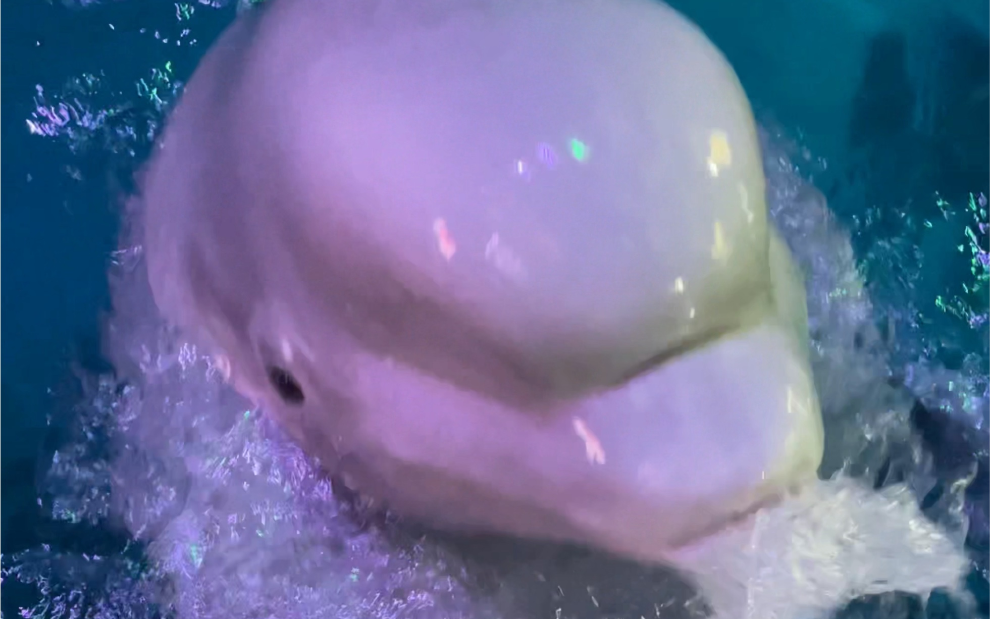 الحوت الأبيض لا يحتاج إلى المضغ عند تناول الطعام.