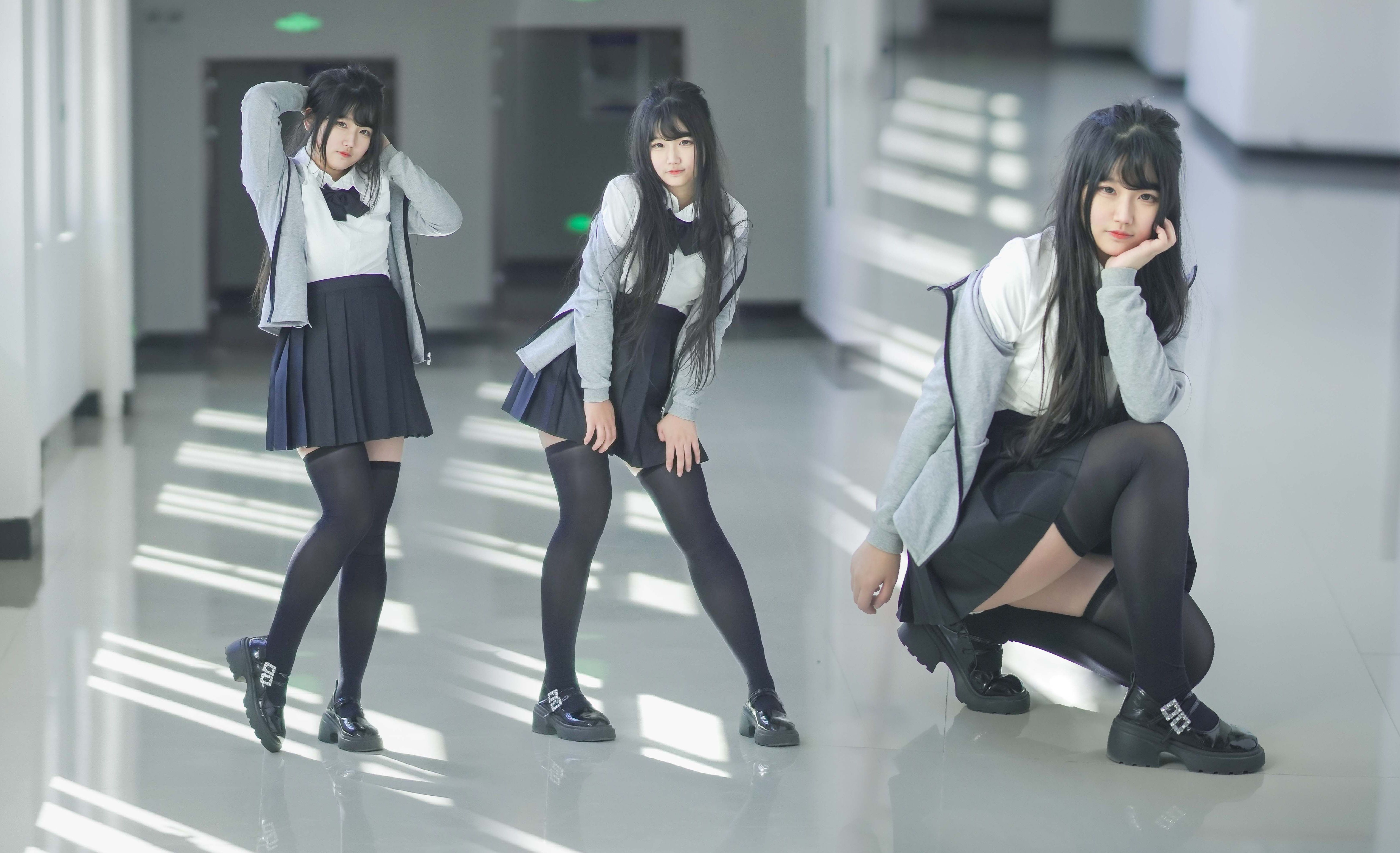 القطة الصغيرة golaniyule0 ترقص بحرارة، ذيلان حصان، شعر مستعار، زي خادمة